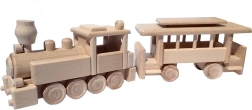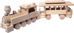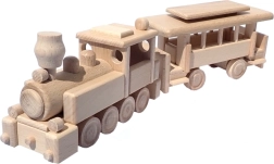 Il trenino è realizzato in faggio massello ed è trattato solo con cera e lucidatura. Conserva la venatura autentica del legno, è delicato e sicuro per le mani dei bambini.