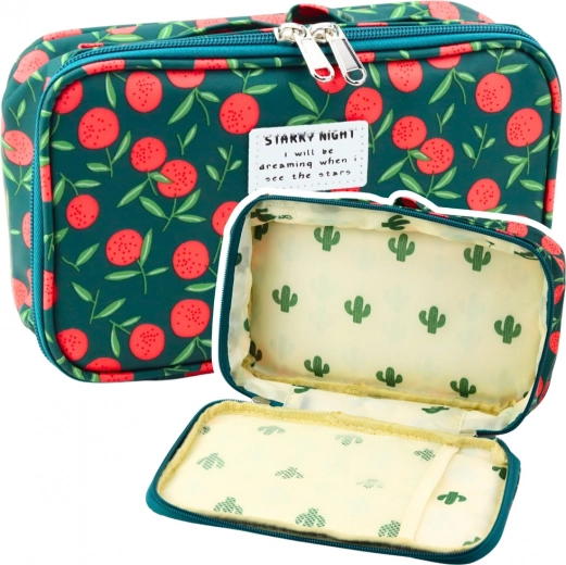 Astuccio scolastico spazioso e funzionale con stampa di ciliegie, ideale per l'uso quotidiano a scuola. Ha un compartimento principale che contiene tutto il necessario per la scuola e una pratica tasca interna.