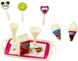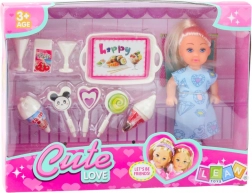 Il set include una bambola alta 12 cm vestita in abito blu con stampe carine e accessori a tema come lecca-lecca, gelati, coni e un vassoio con spuntini. Questi accessori non solo arricchiscono il gioco, ma supportano anche lo sviluppo dell'immaginazione, delle abilità manuali e delle competenze sociali del bambino.