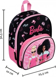 Lo zaino con motivo Barbie offre un aspetto attraente nella combinazione rosa-nero con immagini della bambola preferita.