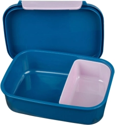 La larga chiusura a clip assicura una facile apertura e chiusura sicura, ideale per le mani dei più piccoli. All'interno troverai un scomparto removibile che facilita la conservazione separata di diversi alimenti come frutta, biscotti o panini.