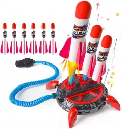 Un potente impulso d'aria dalla pompa a pedale invia i morbidi razzi in schiuma davvero in alto – perfetto per gare e per allenare la stima delle distanze.