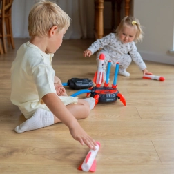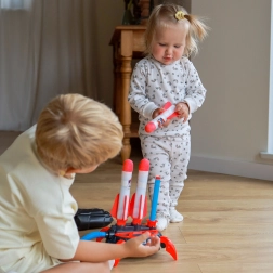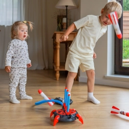 Il giocattolo favorisce la motricità grossa, le capacità di coordinazione e la curiosità verso la scienza. Grazie al semplice montaggio senza attrezzi è ideale per giardino, parco e cortile – e le punte morbide dei razzi assicurano un divertimento sicuro senza spigoli vivi.
