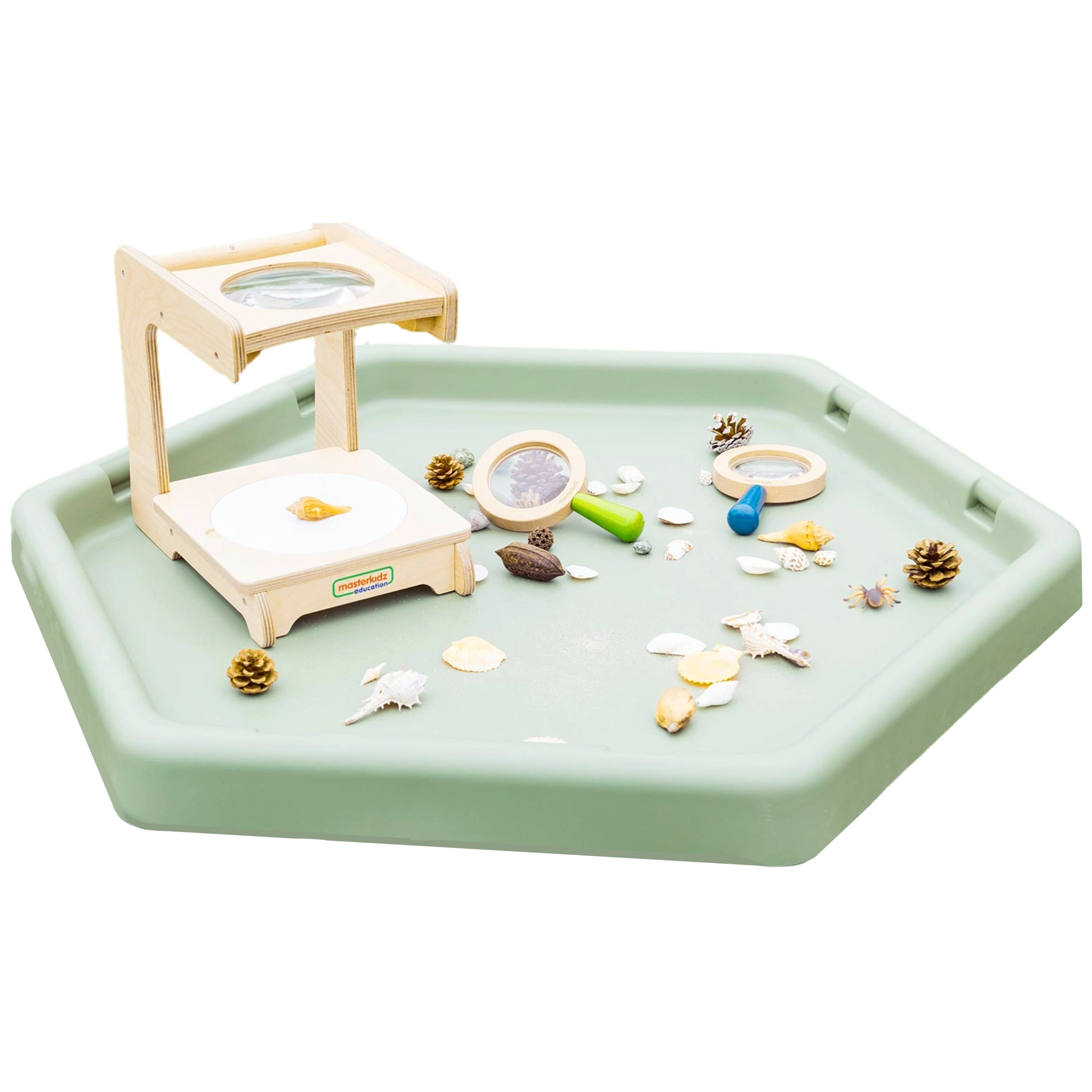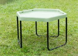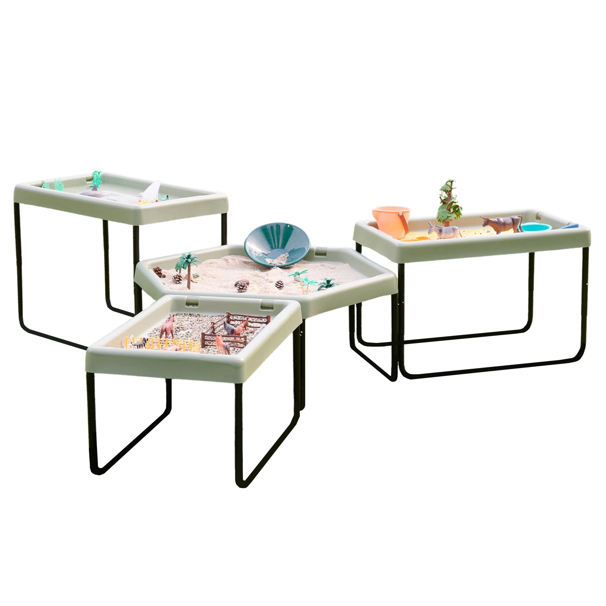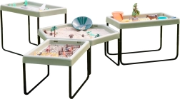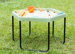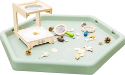 Il tavolino esagonale permette ai bambini di sviluppare la creatività giocando con sabbia, acqua o piccoli mondi tematici.