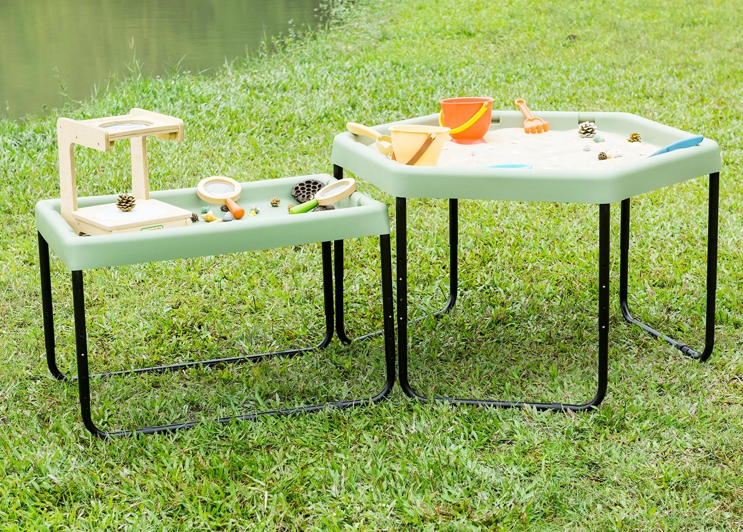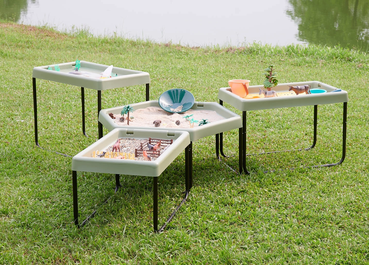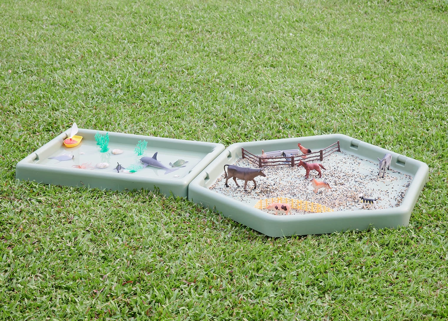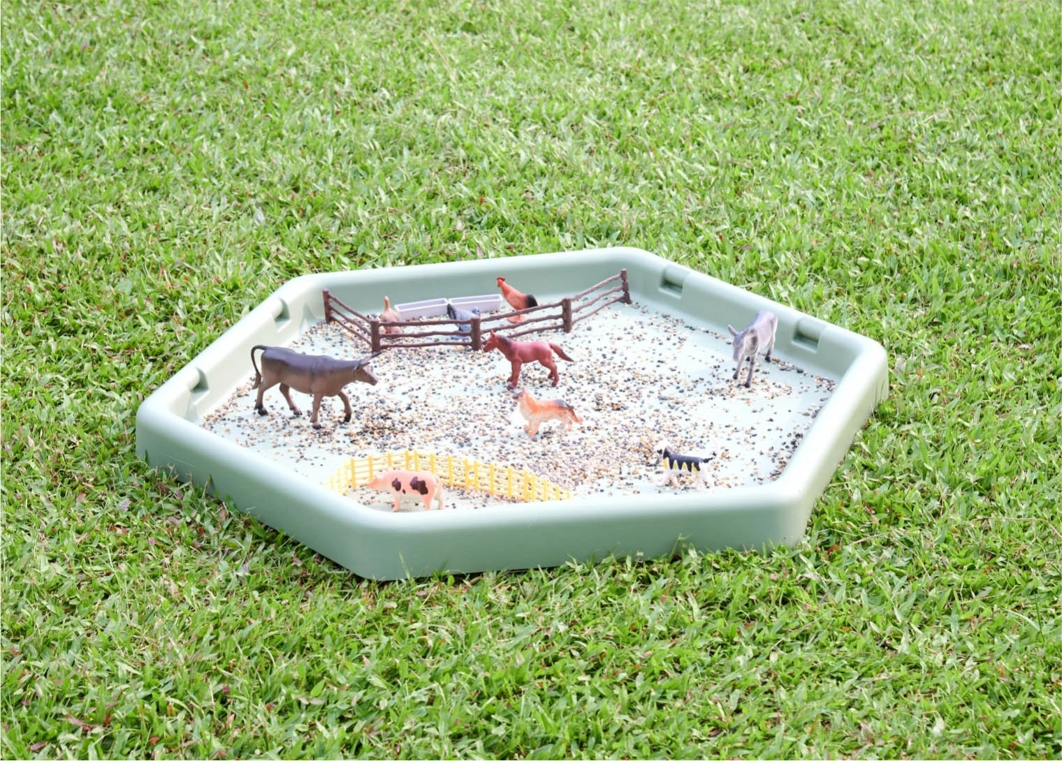 I bordi alti impediscono la dispersione di sabbia, acqua o altri materiali, facilitando il mantenimento dell'ordine durante il gioco. Possiede il potenziale per lo sviluppo della motricità, della percezione sensoriale e dell'esplorazione del mondo circostante.