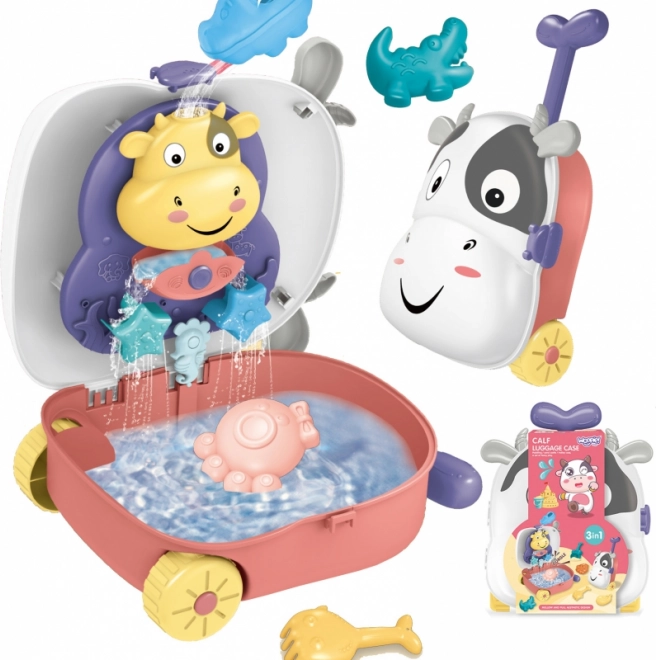 Woopie 3 in 1 valigetta con set per sabbia e tavolo d’acqua – Mucca