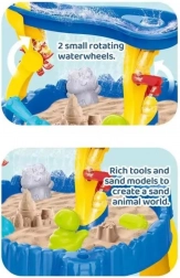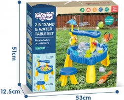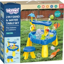 Woopie Tavolino acqua e sabbia 2in1 offre ai bambini infinite possibilità per sviluppare motricità e creatività. Ideale per i bambini dai 3 anni, è adatto per l'uso interno ed esterno. La sua struttura leggera e stabile con elementi colorati è facile da montare, facilitando un inizio rapido del gioco.