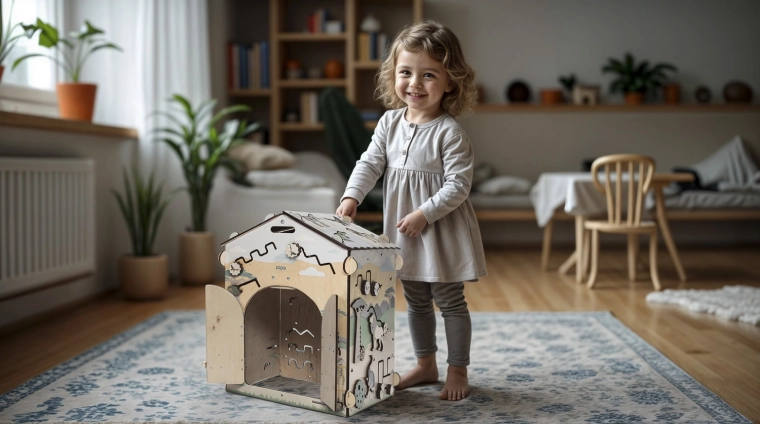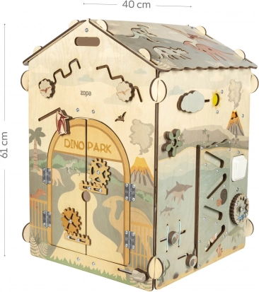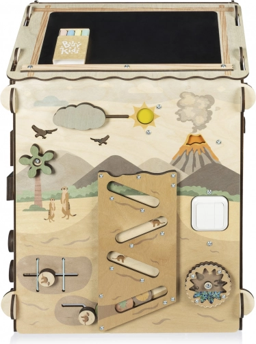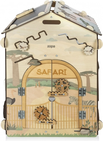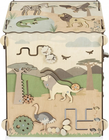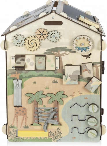 Scoprite la grande casetta educativa in legno con tema safari, che trasforma l’apprendimento in avventura. Sostiene lo sviluppo della motricità fine, del pensiero logico e della creatività grazie a labirinti, ingranaggi, elementi rotanti e alla lavagna a gesso sul tetto. La struttura solida in legno e le attività studiate secondo i principi Montessori divertono uno o più bambini contemporaneamente.
