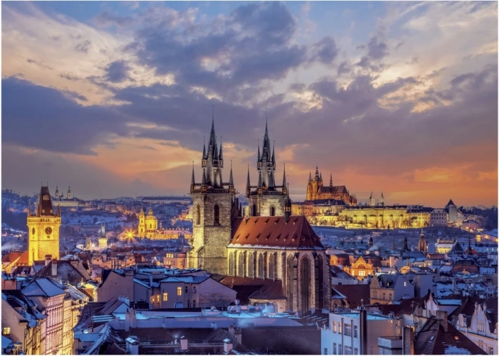 Puzzle neon Vista su Hradčany, 1000 pezzi. Si illumina al buio, produzione ceca, cartone resistente e taglio laser preciso. Idea regalo e decorazione ideale.