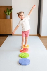 Presentiamo ottagoni sensoriali con diverse texture, ideali per lo sviluppo della percezione sensoriale dei bambini dai 18 mesi di età. I giocattoli supportano la stimolazione tattile e aiutano i bambini a scoprire un nuovo mondo di forme e superfici.