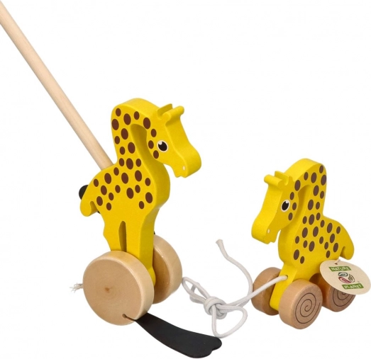 Questa giraffa di legno di qualità è il compagno ideale per i bambini dai 18 mesi. Si distingue per la struttura solida, la superficie liscia e il design allegro che invoglia al movimento. Quando viene spinta, le “zampe” laterali vicino alle ruote si muovono ritmicamente, creando un attraente effetto visivo e stimolando la naturale curiosità.
