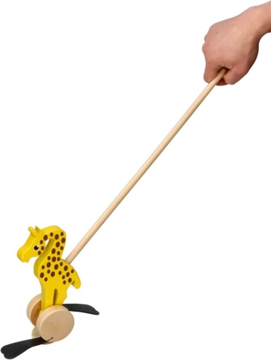 La lunga asta in legno offre ai bambini una guida sicura del giocattolo e sostiene in modo naturale l’apprendimento della camminata e dell’equilibrio.