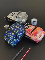 Display di vendita contenente 18 mini zainetti alla moda ideali per riporre piccoli oggetti essenziali. Grazie al design pratico e al moschettone argentato, si possono facilmente fissare a biciclette, monopattini, zaini o borse.