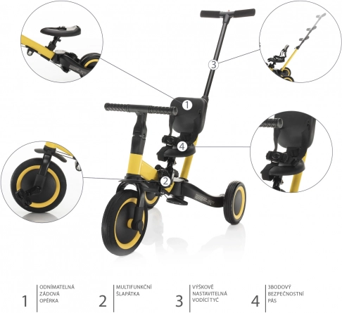 • 3 modalità d'uso: triciclo (con/senza asta di guida), balance bike, bicicletta