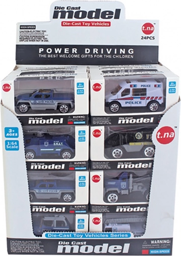 L'auto classica della polizia con ruote libere di 7,5 cm è il giocattolo ideale per i piccoli appassionati di mezzi di trasporto. Disponibile in sei varianti in confezioni da 24 pezzi.