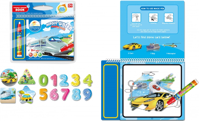 Scopri la gioia della creazione creativa con la pittura ad acqua dei veicoli di trasporto. Scopri un mondo pieno di colori senza caos grazie ai libri da colorare unici che si attivano con l'acqua.