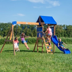 Questo fantastico set da gioco della ditta americana Backyard Discovery, proprietaria del noto marchio STEP2, incanta per la qualità e la lavorazione precisa. Sono stabili, sicuri e durevoli, realizzati in cedro, che assicura loro una naturale resistenza a marciume, insetti e intemperie. I kit mantengono i loro colori e caratteristiche per molte stagioni. Le casette e i parchi giochi in legno di Backyard Discovery sono splendidi e ben attrezzati.