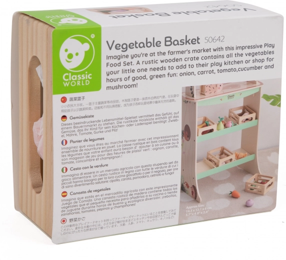 Il cestino di legno con verdure del marchio Classic World offre ai bambini infinite possibilità di gioco creativo in cucina o nel negozio. Gli elementi in legno che rappresentano diversi tipi di verdure sviluppano l'immaginazione e le abilità sociali dei bambini.