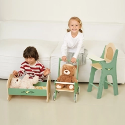 Questa affascinante culla in tonalità verdi unisce il fascino senza tempo dello stile vintage con la bellezza naturale della trama in rattan. Dettagli classici e colori tenui rendono la culla un'aggiunta perfetta a qualsiasi gioco per bambini, che si tratti di accudire bambole o orsacchiotti. Le delicate decorazioni conferiscono alla culla un carattere unico e il set di lenzuola morbide garantisce un sonno confortevole per la bambola.