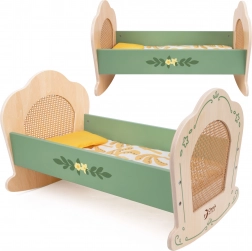 Culla in legno per bambole in stile vintage con elementi in rattan naturale! Questa magica culla combina il fascino senza tempo dello stile vintage con la bellezza della trama in rattan e sarà un'aggiunta fantastica a qualsiasi gioco per bambini.