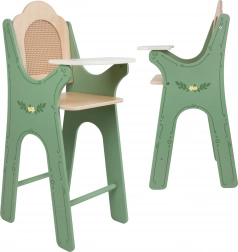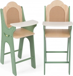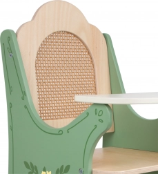 Sedia per bambole in legno nello stile Vintage con schienale in rattan! L'elegante sedia aggiunge autenticità al gioco della cura delle bambole. Nei toni del verde e con delicati dettagli floreali, questo prodotto è un complemento perfetto per ogni gioco infantile.