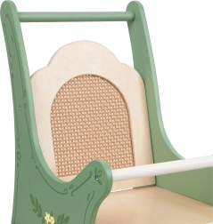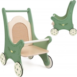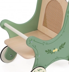 Questo affascinante passeggino per bambole combina lo stile classico con materiali naturali. La sua struttura verde con ornamenti floreali e schienale in rattan attira l'attenzione e crea uno stile retrò unico. Perfetto per i piccoli bambini che adorano fare i curatori.