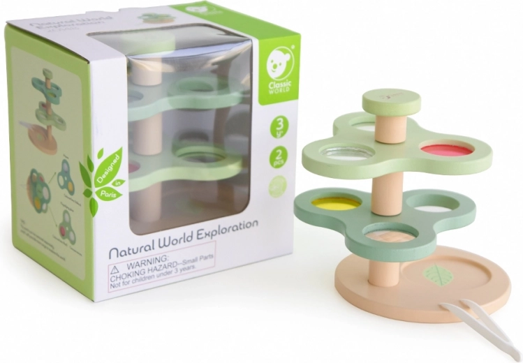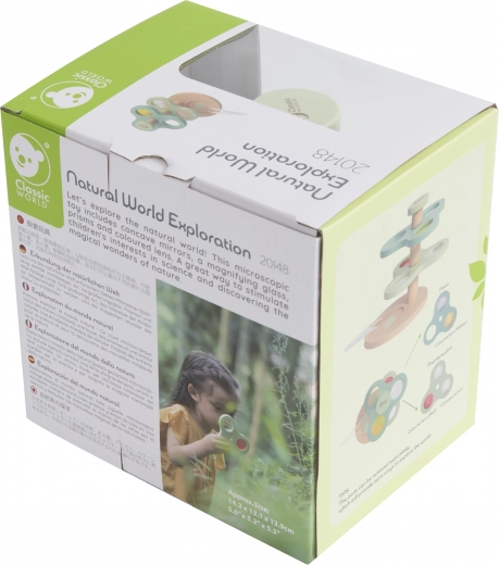 Microscopio e lente d'ingrandimento in legno 2 in 1 "Esplorazione della natura" di Classic World, che stimola l'interesse dei bambini per la scienza e la scoperta. Questo set giocattolo include lenti colorate, prismi, vetro d'ingrandimento e specchi concavi, che incoraggiano la creatività e migliorano la motricità.