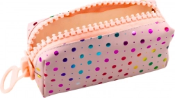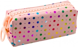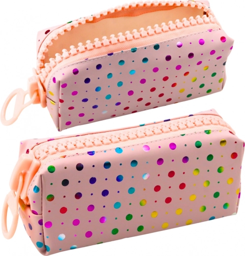 Elegante astuccio scolastico in colore rosa pastello con pois colorati che offre una soluzione pratica per conservare le tue forniture scolastiche. Il suo design moderno attira bambini e adolescenti che preferiscono originalità.