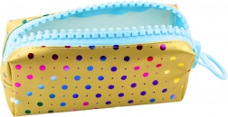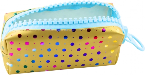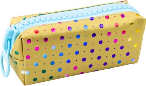 L'astuccio scolastico in colorazione dorata con punti colorati combina un design moderno con una soluzione pratica per la conservazione degli strumenti scolastici. Il suo design vivace e allegro rende l'astuccio attraente per bambini e giovani che apprezzano uno stile originale.