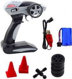 Grazie alla batteria potente 7.4V e al preciso telecomando 2.4 GHz, l'auto raggiunge fino a 30 km/h, portando emozione e divertimento alla guida. Le gomme intercambiabili consentono di adattare lo stile di guida e altri accessori come coni e chiavi vi permettono di creare il vostro circuito di gara personale.