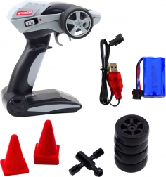 Nel set è inclusa anche una serie di pneumatici di ricambio, una chiave per la loro sostituzione e coni per l'allenamento al drift. Questo modello sviluppa abilità motorie, riflessi e la passione per la tecnica e la guida sportiva.