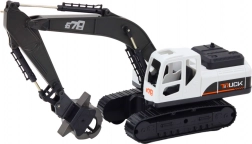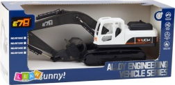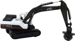 L'escavatore cingolato è dotato di una benna al posto della tradizionale pala, ha un braccio articolato con diversi punti mobili e una rotazione della base a 360°. Il telaio su cingoli assicura stabilità e un aspetto robusto come le vere macchine da costruzione. Il modello in moderna combinazione di colori bianco-nero-grigio si adatta perfettamente a qualsiasi collezione di giocattoli da costruzione.