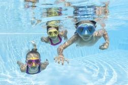 Prova la maschera da nuoto Bestway Dominator per bambini dai 3 anni, che garantisce eccellente visibilità sott'acqua grazie alla sua fascia comoda e regolabile per un uso sicuro e confortevole.
