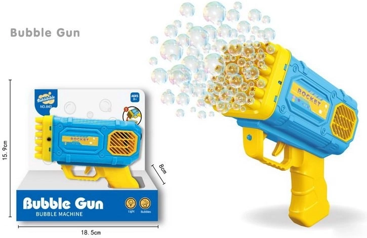 Vivi un divertimento infinito con la pistola a bolle che affascina sia i bambini che gli adulti. Questa pistola automatica è dotata di effetti luminosi che aggiungono un tocco speciale al gioco. Con dimensioni compatte di 15,5x14,5x7,5 cm, è ideale da utilizzare in casa e in giardino.