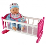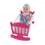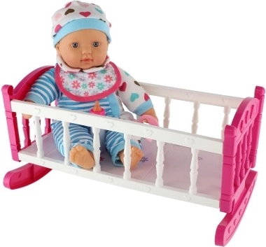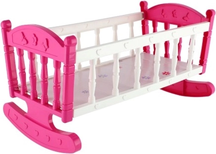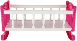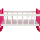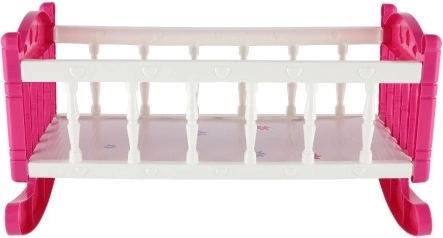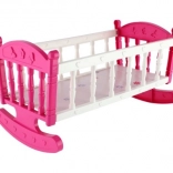 La culla rosa e bianca con delicati decori è realizzata in plastica resistente, permettendo di dondolare e addormentare la bambola. Ideale per sviluppare la fantasia durante il gioco.