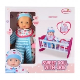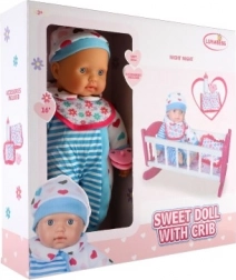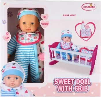 Questa volta presentiamo una bambola con culla unica, un fantastico complemento al mondo di gioco di ogni bambino. Il corpo morbido della bambola consente una facile manipolazione e il trasporto, aggiungendo realismo ai movimenti durante il gioco. La culla rosa con strisce bianche e motivi a cuore è perfetta per addormentare la bambola, mentre gli accessori come il biberon e il ciuccio offrono un’esperienza realistica di cura del bebè.