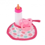 La confezione include anche un ciuccio, un biberon e un bavaglino con motivi floreali, che completano l’esperienza di cura della bambola.