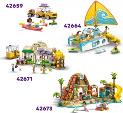 Inclusi un DJ booth con piatto girevole e microfono per far decollare la festa, oltre a crema solare, bevanda e ghiaccioli per ampliare il gioco di ruolo. Con l’app LEGO Builder i bambini possono ingrandire i modelli, ruotarli e seguire i passaggi di costruzione.