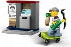 - Tutto nella confezione – moto, skateboard, bancomat, minifigure dell’agente e del ladro.