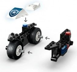 Introduce i bambini a un mondo di azione e fantasia. Il set offre una moto della polizia facile da costruire, un mini bancomat apribile con banconota e le minifigure dell’agente e del ladro skater per divertenti scene di inseguimento in citte0.