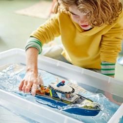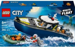 Salpa per l’avventura con il motoscafo della polizia LEGO CITY e l’inseguimento del ladro in mare. Il set include una grande nave di pattuglia, un gommone veloce del ladro, minifigure di agenti, un squalo e una miriade di accessori d’azione per scene emozionanti sull’acqua.