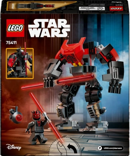 Include la minifigure di Darth Maul con la leggendaria doppia spada laser rossa, che può essere fissata sulla schiena del mech per un deposito sicuro.