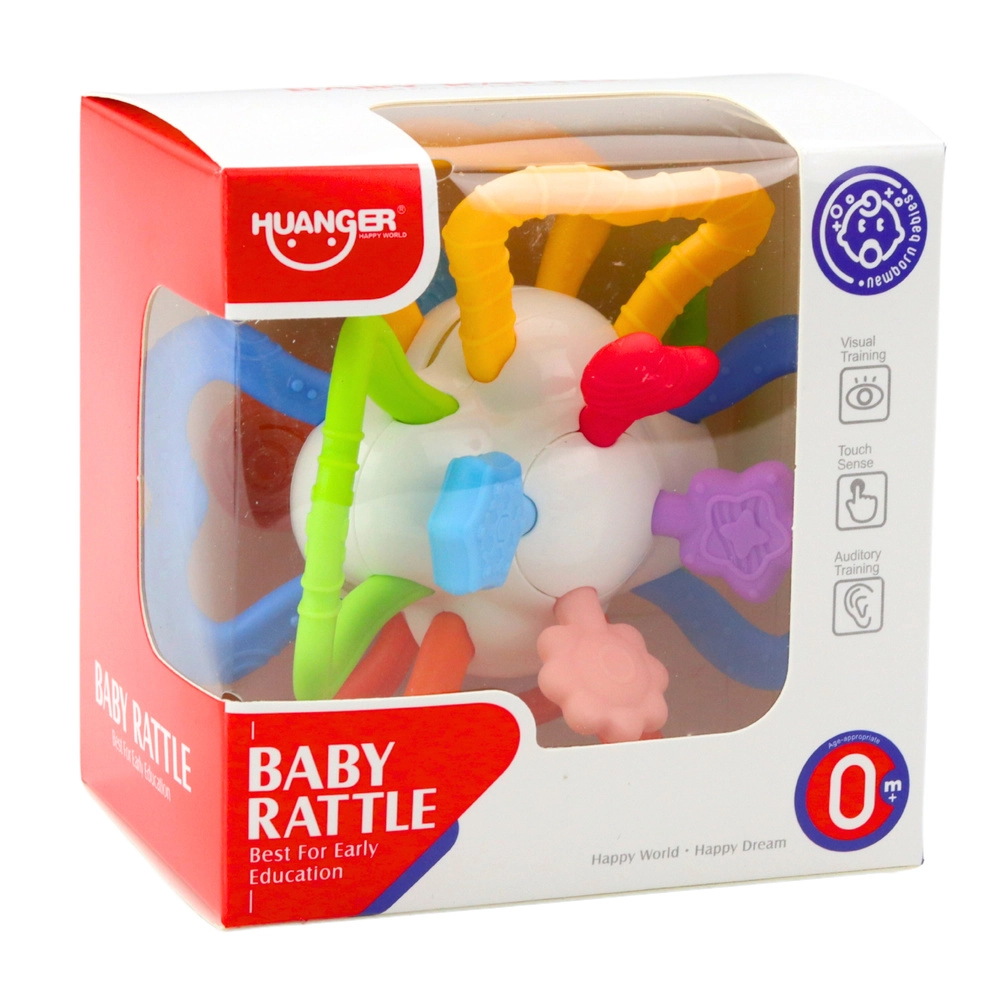 Le dimensioni compatte e la struttura leggera rendono questo giocattolo ideale per l'uso domestico, le passeggiate o i viaggi. Il design colorato cattura l'attenzione del bambino, mentre il lieve tintinnio calma e stimola la curiosità. Il giocattolo offre non solo divertimento, ma anche un vero supporto allo sviluppo del bambino già dai primi mesi di vita.