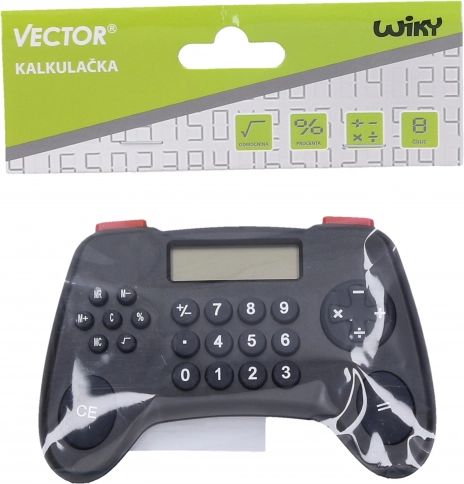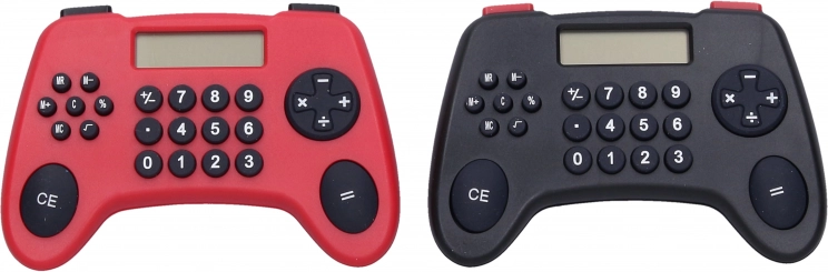 Moderna calcolatrice a forma di gamepad, adatta per l'uso quotidiano sia a casa che in ufficio. Grazie alle sue dimensioni compatte trova facilmente posto sulla tua scrivania o nella borsa.