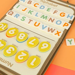 Opportunità educative: All'interno della valigia troverete pagine in feltro per cucire, carte educative con lettere e numeri e una lavagnetta per attività creative.