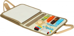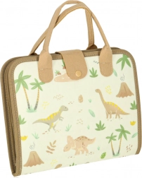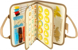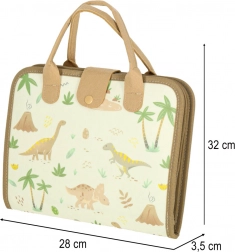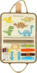 La valigia contiene una lavagnetta e componenti educativi, grazie ai quali i bambini possono sviluppare conoscenze attraverso il gioco. Ci sono anche figure di dinosauri in feltro per giochi creativi.