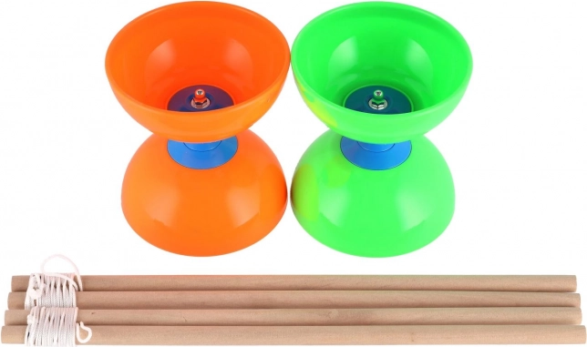 Il grande diablo con robuste ciotole in plastica e bacchette in legno offre tanto divertimento e allenamento della motricità. Grazie alle ciotole larghe e all’asse stabile, il diablo è molto stabile, mantiene bene la velocità e perdona gli errori – ideale per imparare e sviluppare i trucchi.