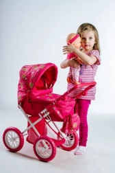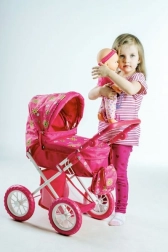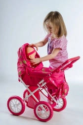 Questa bellissima carrozzina per bambole porta gioia a ogni piccola mamma. Con un spazio di stivaggio sotto, potete tenere tutto ciò che vi serve sempre a portata di mano. Una borsa elegante sul lato della carrozzina è ideale per giochi e altre cose essenziali.