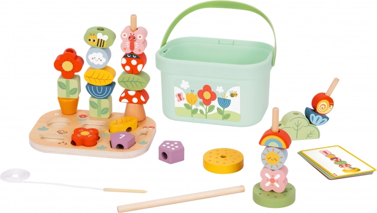 La scatola educativa in legno Magic Garden introduce i bambini in un vivace mondo di foglie, fiori e simpatici insetti. Supporta la motricità fine, il ragionamento logico e la creatività grazie alla combinazione di infilatura, classificazione e costruzione di pattern seguendo le carte attività. I robusti pezzi in legno dai colori pastello sono piacevoli da impugnare e invitano al gioco ripetuto.