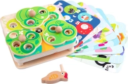 L’uccellino di legno con becco magnetico permette di afferrare e spostare facilmente i vermetti. I bambini allenano precisione, presa e coordinazione mano-occhio ad ogni “pesca”.